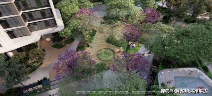 项目以“自然定奢华”为理念,倾力打造约1.6万㎡超级中庭园林。园林内融合约1000㎡立体水系,包括成人泳池、儿童戏水池与灵动叠级水景,搭配紫花风铃木等热带花木,营造出沉浸式的度假生活场景。在这里,度假不再是远行的特权,而是归家即享的日常。