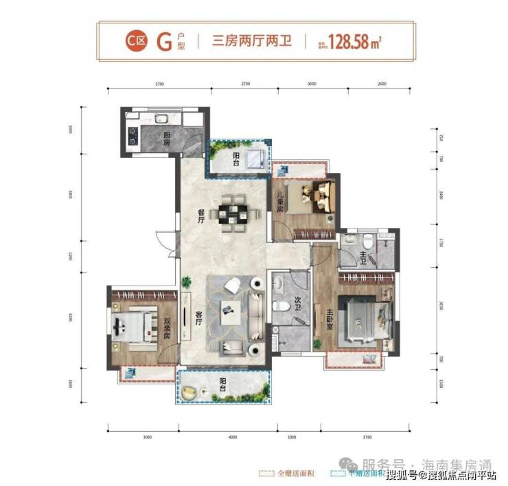 🔹共享空间,厨餐客阳台一体,阖家欢喜满堂