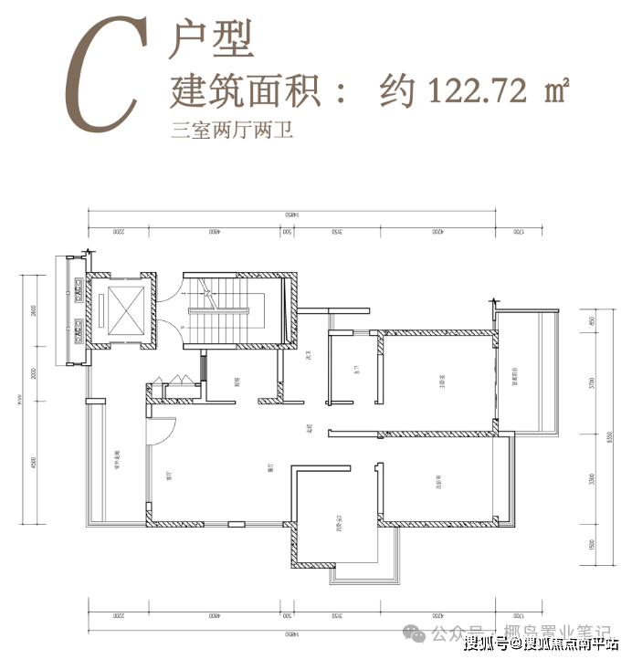 主力户型:98㎡两房,111㎡三房,122㎡三房