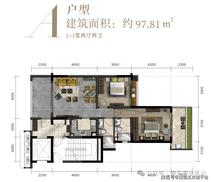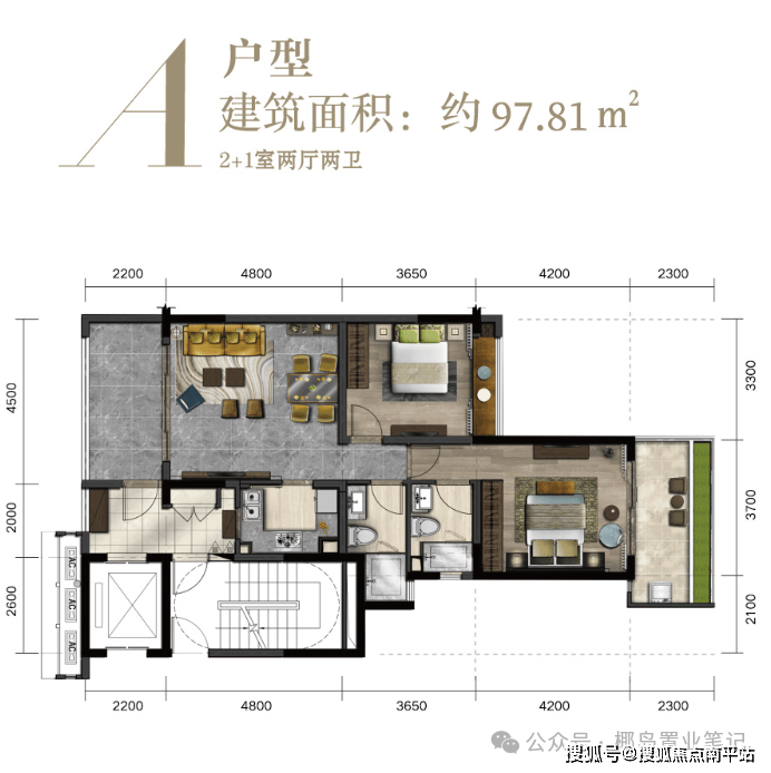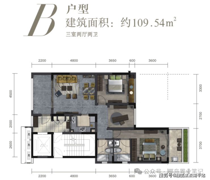 主力户型:80㎡两房、97㎡两房、110㎡三房、122㎡大三房