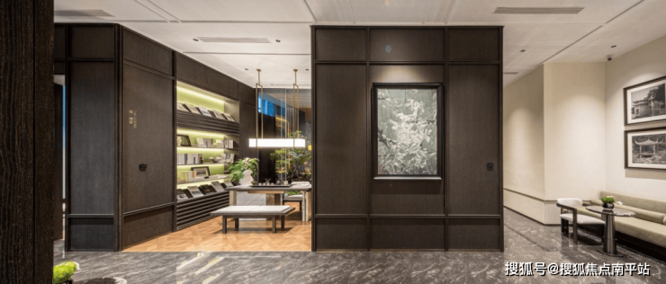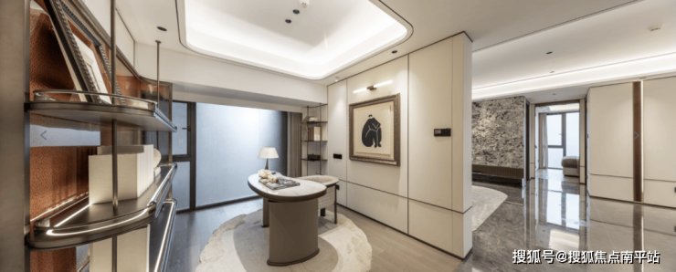 建面约108㎡精装创意样板间以米白为主调,用自然肌理的名贵奢石作为主背景墙,用自然造物点缀空间,精致而不失优雅格调。整个客厅既保有日常的松弛度,又有社交时的隐奢质感,贴合了项目“人生至此,境不同”的宣言。