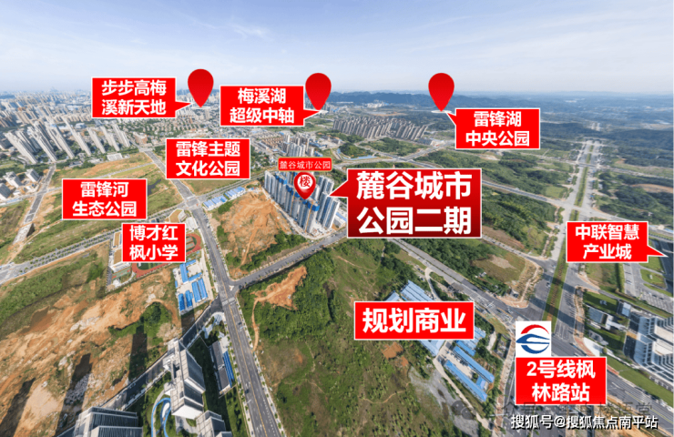 麓谷城市公园二期,拥有“更近”配套,更具繁华烟火气。航拍示意: