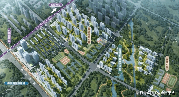 往东一路之隔就是雷锋河生态公园、雷锋主题文化公园,下楼就是公园,饭后溜达、周末游玩、科普娱乐举步即达。