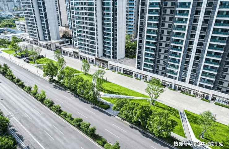 值得一提的是,小区打造了超大商业前坪,并在与主干道之间建设了景观绿化带,让房子离道路更远,居住更安静。