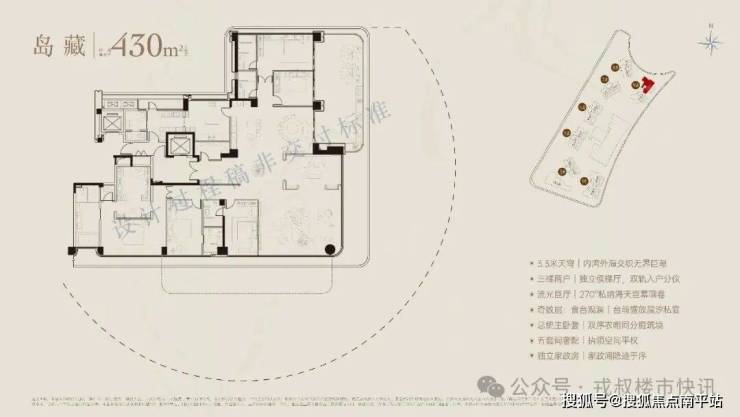 御宸天悦采用北高南低布局,共规划7栋楼,均为四代大宅,三面围合中庭花园,中庭向整个五缘湾敞开,户户专享自己独特观景视野。面积段为191—436㎡,共274套,综合使用率近100%。
