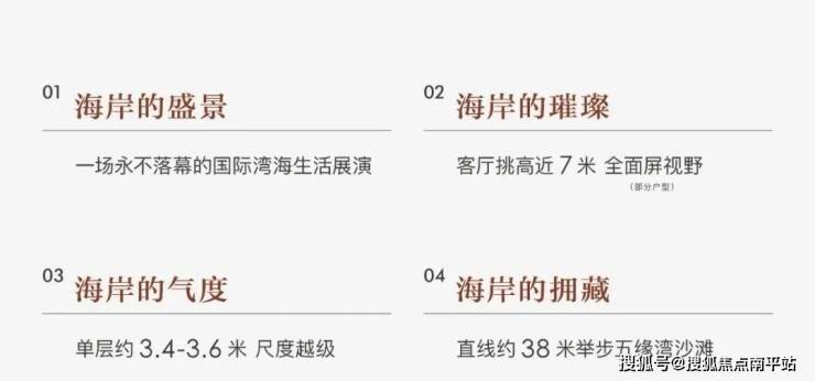 第二排小院墅面积190-210㎡,兼顾舒适度与私密性。第三排洋房170-180-333㎡多元户型,其中下院170-210㎡、平层180㎡、顶复333㎡,第四排规划4栋四代高层,面积段235-280-325㎡。产品自带6米挑高设计,搭配超11米巨幕客厅,坐拥一线海景视野,观景体验拉满。这样的户型分布,也足以反映出项目定位之高以及面向客群之优质。
