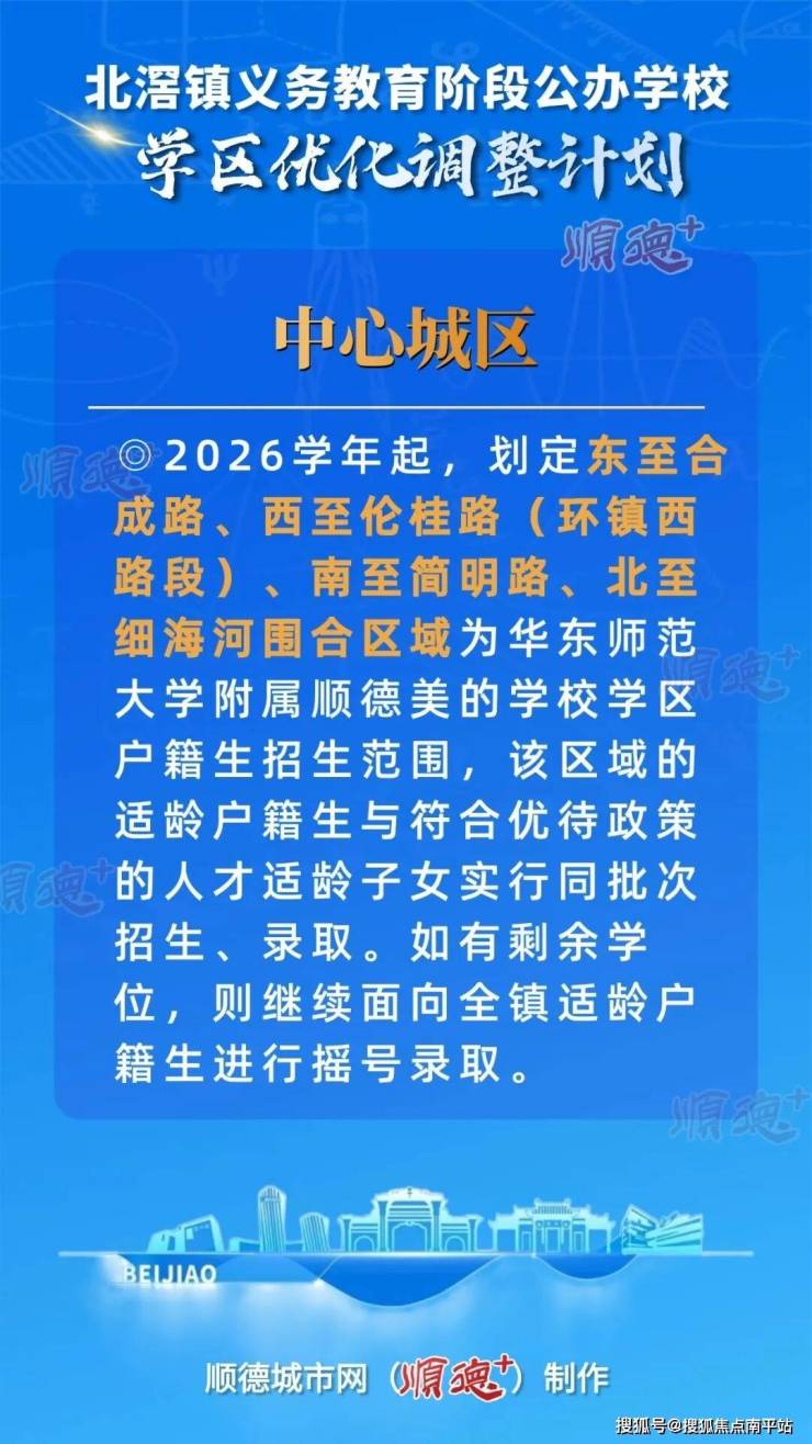 注:上述学区优化调整方案的实施细则,以正式公布的“北滘镇2026年公办中小学招生方案”为准;以上描述仅做参考,不作为入学承诺,具体入学政策以当年教育局政策为准,敬请各位家长和学生密切关注。