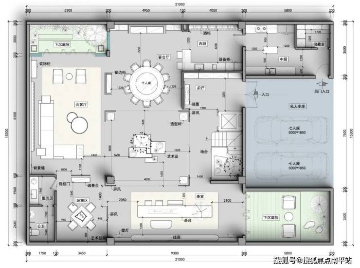 建筑面积:约173㎡,5房4厅7卫+2保姆房+2车位+1庭院泳池,使用面积920m²-1410m²