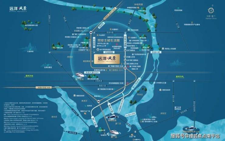厦门远洋·风景择址同安主城区黄金十字中轴,周边已形成直线距离一公里的黄金生活圈。项目紧邻双地铁口(在建中),双BRT站,与城市繁华接轨;项目直线距离约50米直达九年一贯制公办厦门第二外国语学校(城南校区,建设中),乐海城市广场、钟楼壹号商圈、舜弘现代城等繁华商圈环伺左右,3公里内悦享卢戆章公园、苏颂公园、银湖公园、芸溪公园四大生态公园,以及厦大附属第一医院同安院区、妇幼保健院、城南医院三大优质医疗资源。
