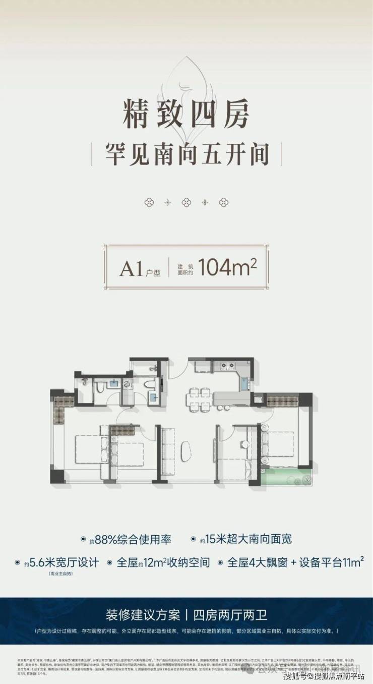 104㎡户型:得房率达到88%,5开间朝南,采用 LDKB 一体化设计,大大压缩了过道面积,实际使用空间能对标传统120㎡户型,总价约580万起,性价比超高。