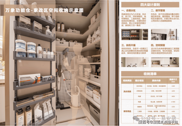 这一系统实现了“全屋功能六大分仓”,从玄关、厨房、餐厅、卫浴到卧室,乃至家政区,每一平米收纳力都被极致挖掘。