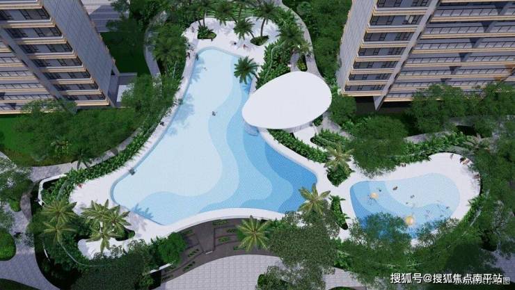 臻质生活艺境:与通海公园对望,打造多重美好生活场景,包括户外悠享泳池、架空层功能活动空间、轻奢疗愈度假园林和精装奢阔室内空间。