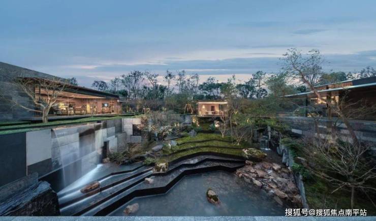 它以实景征服了每一位前去参观学习的同行。山水度假的隐逸哲学,被凝练为一场与自然对话的艺术,大量的借景、对视艺术,让人行走其中时,无时无刻不在与天地对话。