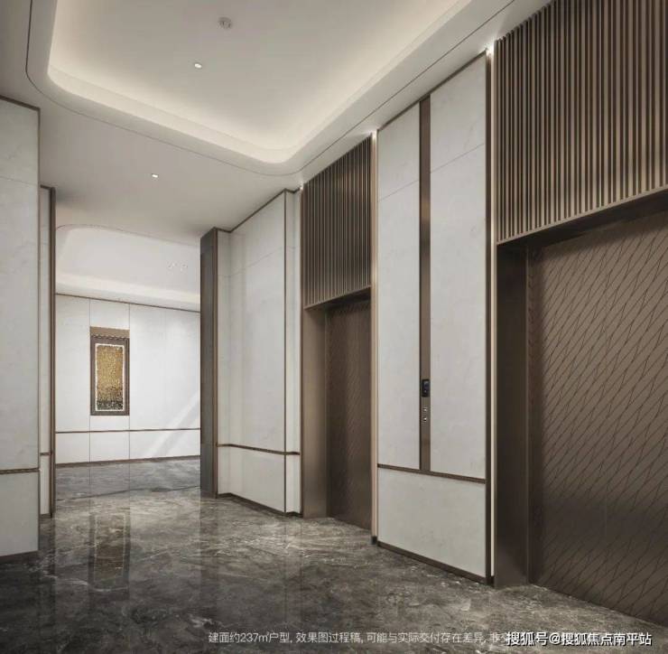 金属屏风呈现简约的建筑之美,与前厅庄尊的仪式感相得益彰,让每一位业主尽享尊崇归家礼遇。