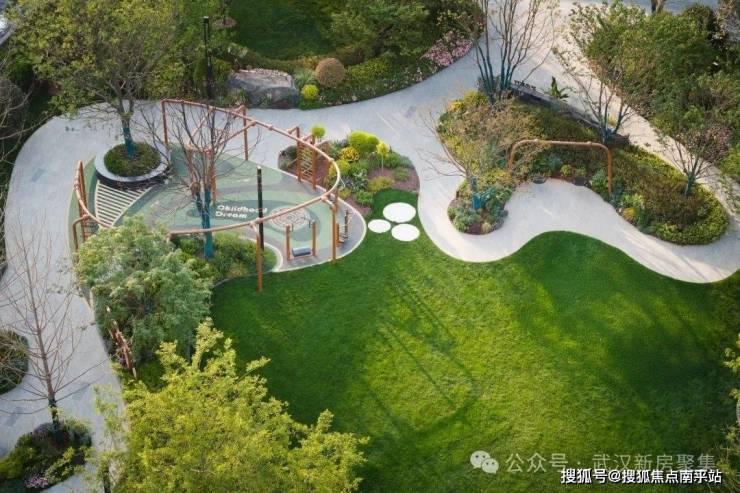 项目北靠洪山,南临南湖,地势北高南低,占据大武昌中心地利。项目结合地势高差,在约7000㎡中央公园打造上,以“叠山”、“理水”、“茂林”、“修花”四大维度,诠释观山听泉的园林意境。