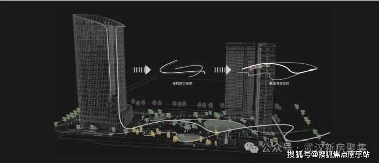 项目在整体规划上以“高山流水”为设计核心理念,以半包围式建筑结构创造“珠玉落玉盘”之形,打造“三境十二序”景观节点,汇聚大武昌天元雅韵之风。