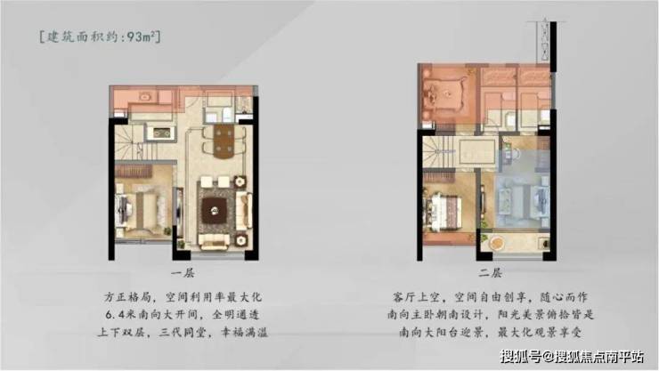 A户型复式93㎡= 市面上133㎡户型,舒适大四房,最小房间10㎡+
