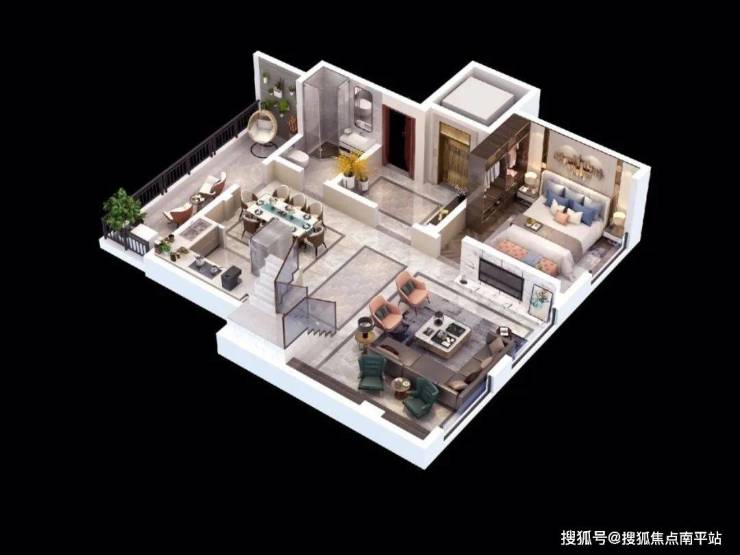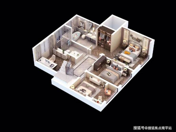B户型复式120㎡=市面上160㎡户型,奢阔大四房,房间最小13㎡+