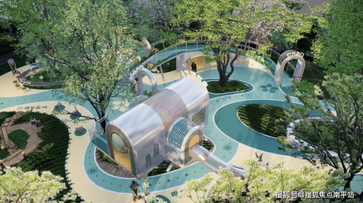 南北双主题儿童主题游乐区:在安全设计上选用自然材质防护,地面使用软木屑、EPDM标准防护地垫,减少跌倒伤害。家长休息区设置透明视野的长凳便于看护,利用温和的灯光或荧光标识标牌,提示安全规则;种植不同叶形、花色的植物,设置树桩舞台,提供动物认知墙。