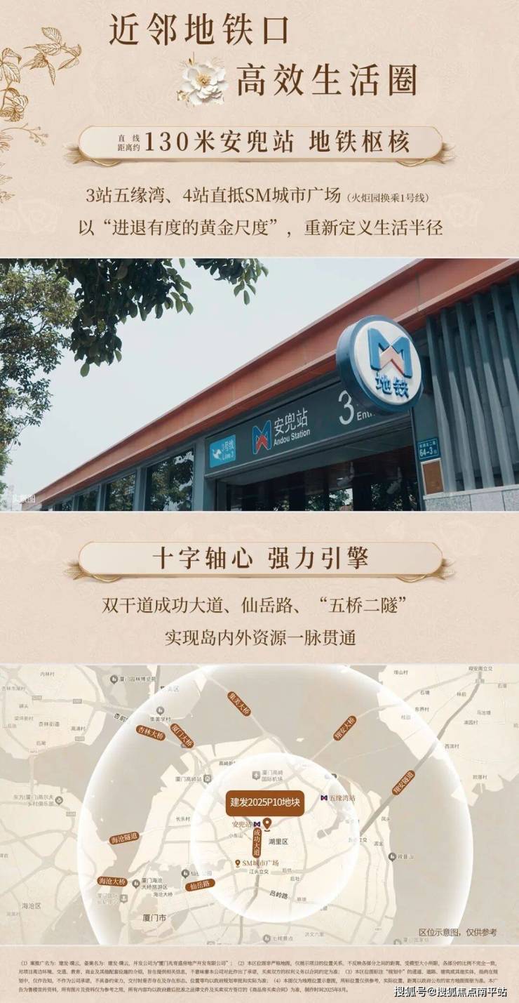 建发璞云位于湖里政务区,紧邻建发养云,延续了 “云系” 产品的品质基因。从位置来看,项目出门 130 米就是地铁站,3 站即可抵达五缘湾,日常通勤、出行十分便捷,对于依赖公共交通的购房者来说格外友好。