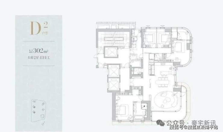 1D栋(1栋四单元)-45层 :均为 3梯2户 ,约 305㎡ ,一层两户。