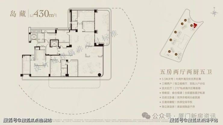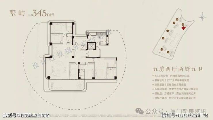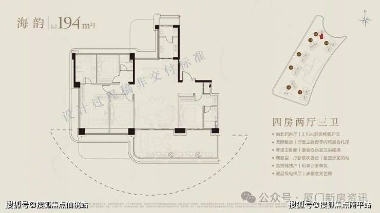 超90米、福建最长海阙之门,琉璃微光,辉映奢雅,厦门首创屋顶内外双无边际泳池,厦门首创三会所顶序豪宅(下沉式会所+架空层泛会所+大门屋顶会所),于厦门首发七衡系统科技配置(衡温、衡湿、衡氧、衡净、衡洁、衡静、衡光)实现低碳环保的居住品质。