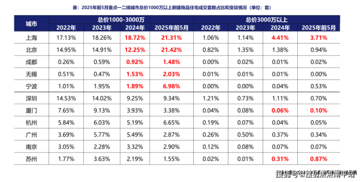上海作为风向标,2024年3000万以上住宅成交额度突破1000亿元,2025年前5月3000万元以上新房已成交915套,成交金额474亿元,全年预计继续突破千亿元,呈现“千亿资金进豪宅”的奇观,展现出顶豪市场强大的抗周期能力。