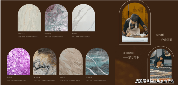 项目秉持“精工匠造”理念,在建筑营造中,严选巴西的百达翡绿、意大利的绿山水、西班牙的皇室咖等全球珍稀奢石,深度融合国家级非遗漆线雕、传统漆画鎏金技艺、螺钿镶嵌工法及惠安石雕工艺,将文化传承与现代建筑美学进行创新性表达,实现空间质感与艺术价值的双重升华,有效回应了顶豪人士的精神追求与文化期待。