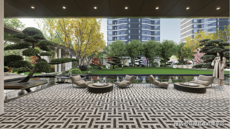 入口处对称布置的罗汉松造景,磅礴巍峨,气象万千,进一步强化了高端社区的仪式感,让每一次回家都成为一场尊贵体验。这种对入口空间的精心打磨,本质上是对归家体验的重视,从进入大门到抵达楼栋,每一步都伴随居住感的层层递进。