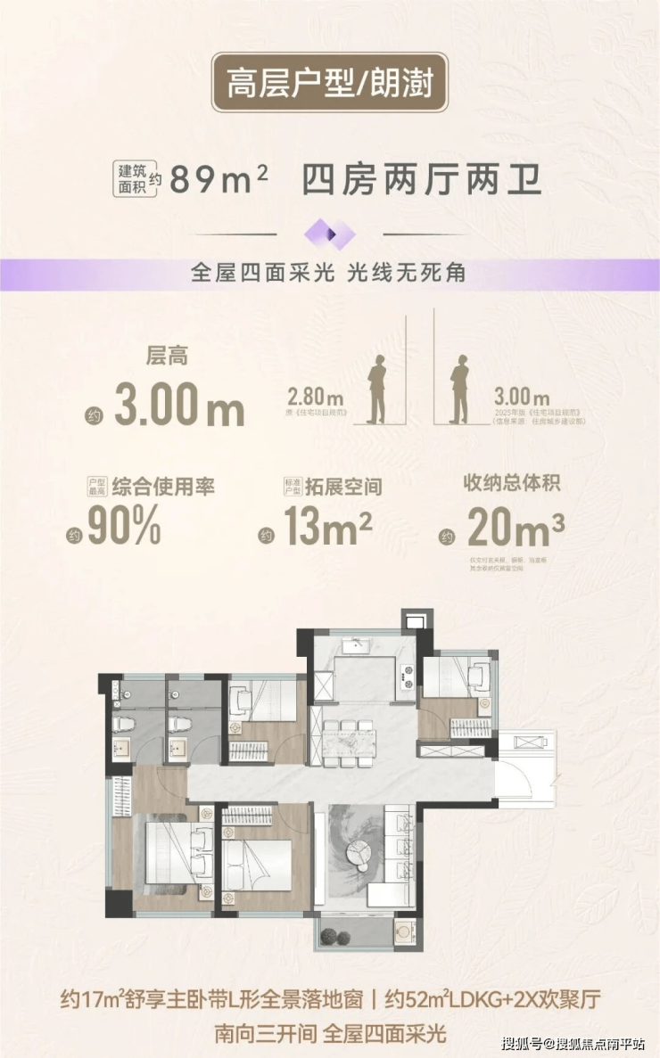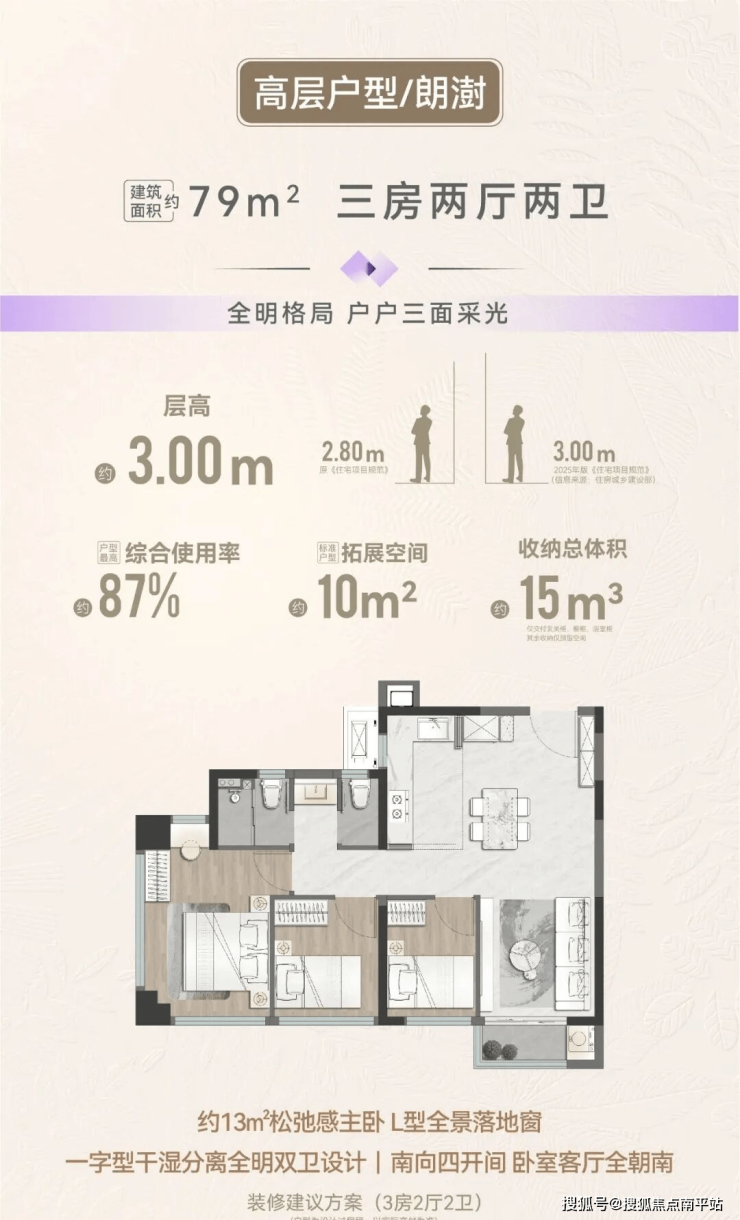 其中64㎡精装两房得房率85%,客厅卧室全朝南,主卧带衣帽间,顶配精装+智慧社区,主打小而精。