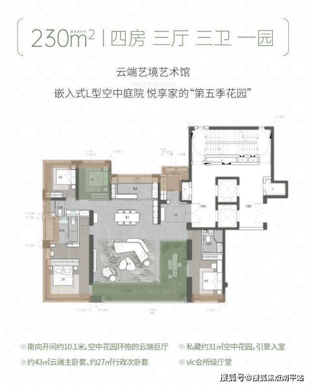 建面约230㎡四房三厅三卫一园