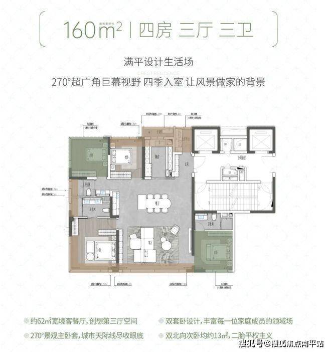 建面约160㎡四房三厅三卫