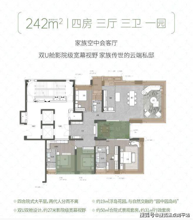 建面约242㎡四房三厅三卫一园