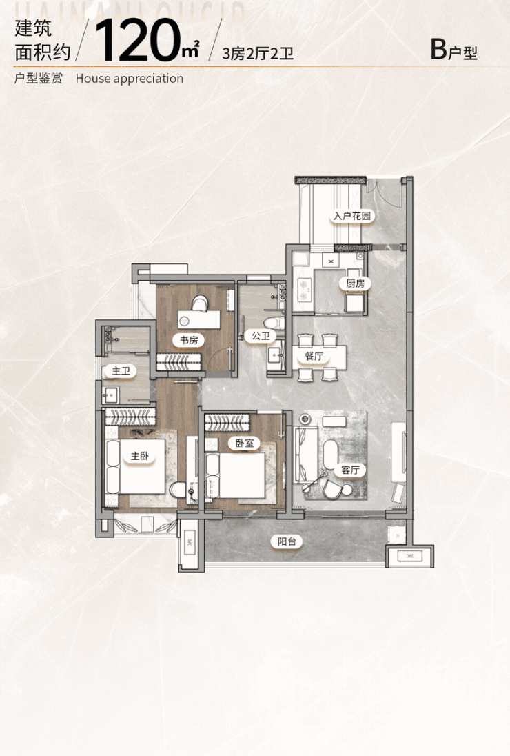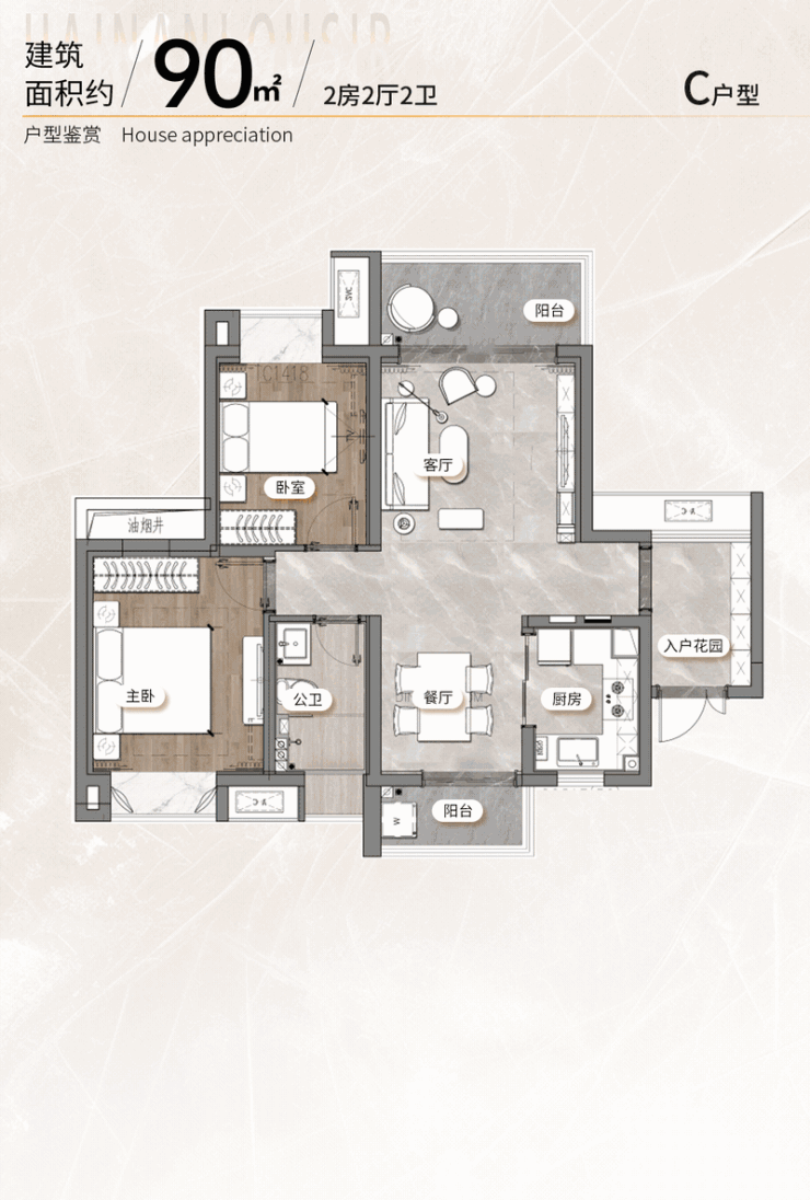 项目一共有建面约90㎡和120㎡两个面积段的三个户型,可以精准戳中不同的家庭需求。