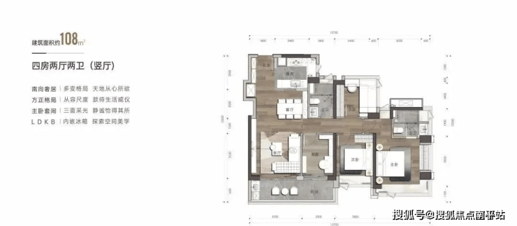 建筑面积约108㎡户型-4房2卫(竖厅)