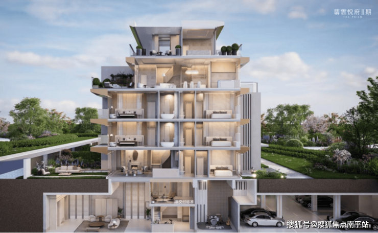 在建筑形态上,项目以全新结构形态,创新打造“流瀑五叠”形制与“二跃三”立体格局。五层建筑如水瀑般层层递进,打破呆板堆叠;二跃三格局让上叠拥有了完整的三层空间,彻底告别“阁楼+露台”的局限。