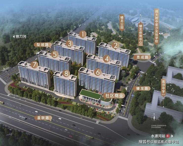 👉项目西侧规划为农林用地,临近捞刀河、天然森林氧吧,项目北侧围绕蟠龙公园、蟠龙体院馆、蟠龙医院,项目自带社区商业底商,外环蟠龙时代广场等多个大型商业体;