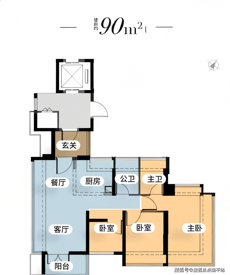 阅璟台90㎡也能做到南北对流(1栋1条梯腿),100㎡以上全部南北对流。