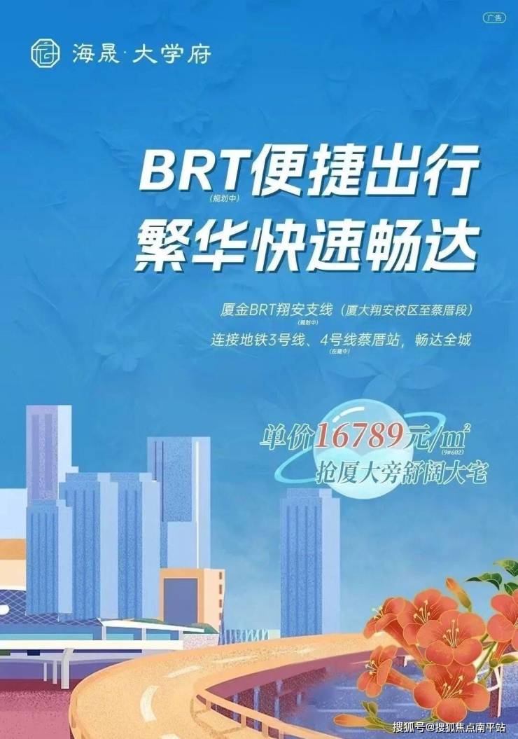 所以,海晟大学府位处的厦大板块属于科学产业新城,有厦大附属九年制学校,厦大科技园商业街,学生街,沙美社区综合体等配套,依托厦大带动人气,未来机场运营后航空港产业辐射,片区有一定发展前景。今年在交通方面也补齐了短板,BRT轨道交通官宣延伸至厦大,将于2026年12月和新机场一起开通,未来无缝接驳地铁出行。
