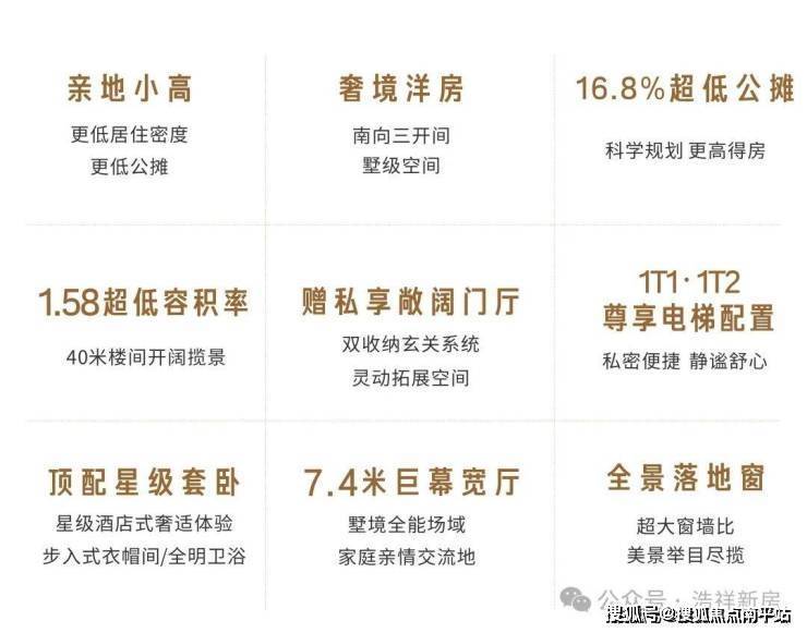 九大亮点:☑低容积率 ☑低公摊 ☑巨幕横厅 ☑全景落地窗·超高窗墙比 ☑墅质顶底跃·花园露台 ☑赠送尺度私属门厅 ☑赠送全景飘窗·阔尺阳台 ☑户户双卫 ☑1T1·1T2电梯配置