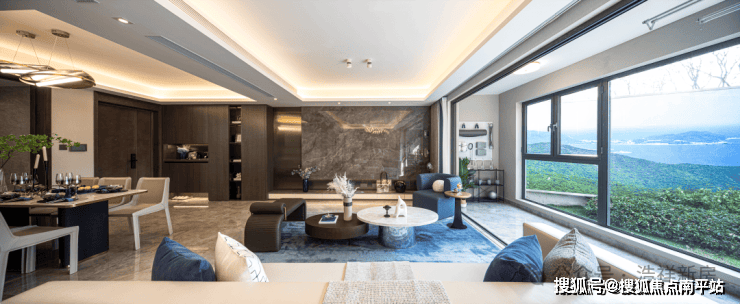 大面积玻璃配比,全景落地窗:大尺度打开建筑的采光面和通透性,让光线与自然景致无间入户。