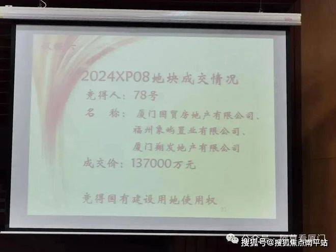 2024XP08地块位于翔安区13-13刘五店片区东界北路与凤鸣路交叉口南侧,总用地面积约4.05公顷,总计价建筑面积9.20万平方米。地块起拍总价13.7亿元,起拍楼面价15000元/㎡。地块采用拍卖方式出让,按照价高者得原则确定受让人。