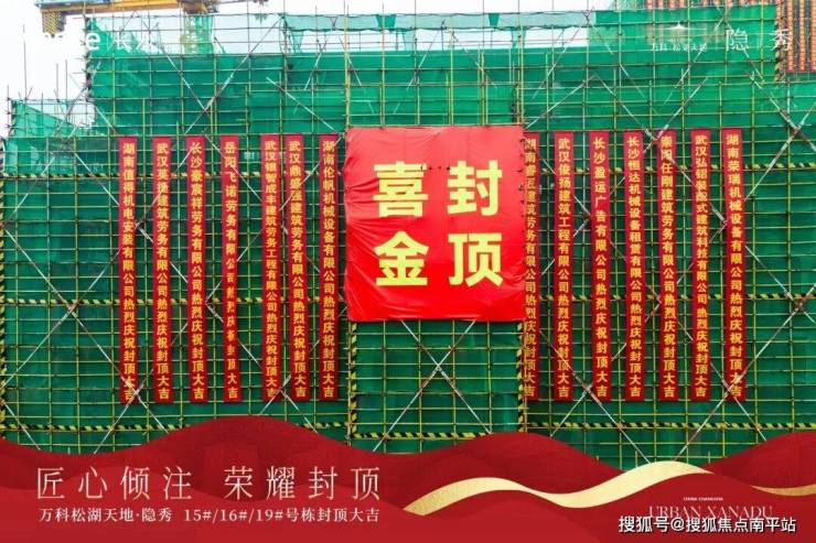 春晖洒落松雅湖畔,3月22日,万科松湖天地·隐秀项目现场彩旗飘扬、礼炮齐鸣,15#、16#、19#主体结构封顶仪式圆满礼成!这一里程碑时刻,不仅标志着项目工程进度迈入全新阶段,更以实景可鉴的交付力,向市场递交了一份关于品质与承诺的满分答卷——这份答卷,藏着隐秀强劲的兑现速度,更藏着星沙改善选隐秀的安心与底气。