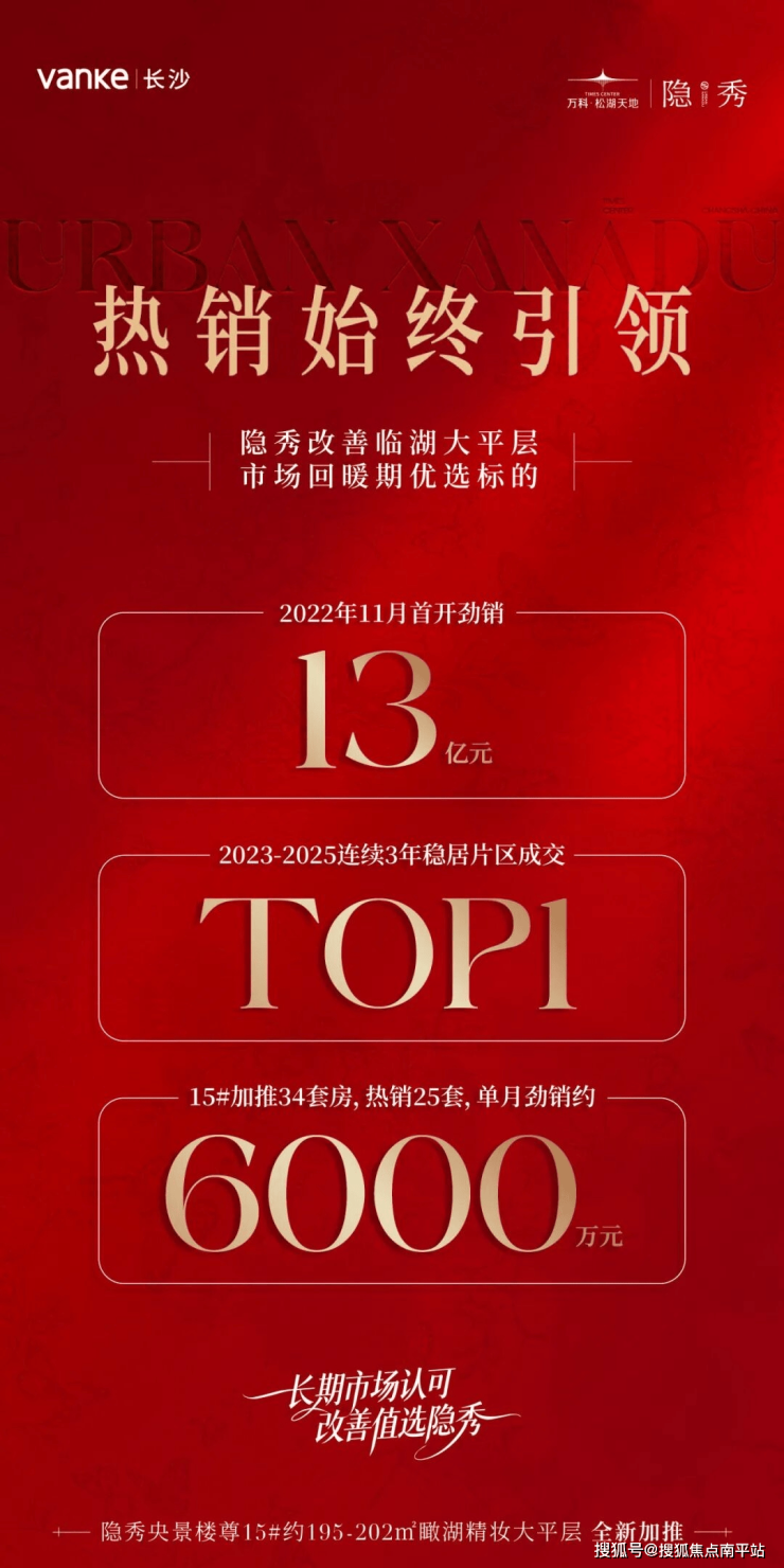 5个月封顶的“万科速度”,三次开放展示区的“强兑现底气”,不可复制的资源与产品力,万科松湖天地·隐秀用实力诠释了何为“星沙改善优选”。在市场回暖、政策利好的窗口期,选择隐秀,就是选择一份看得见的品质、一种摸得着的安心,和一个可预见的美好未来。