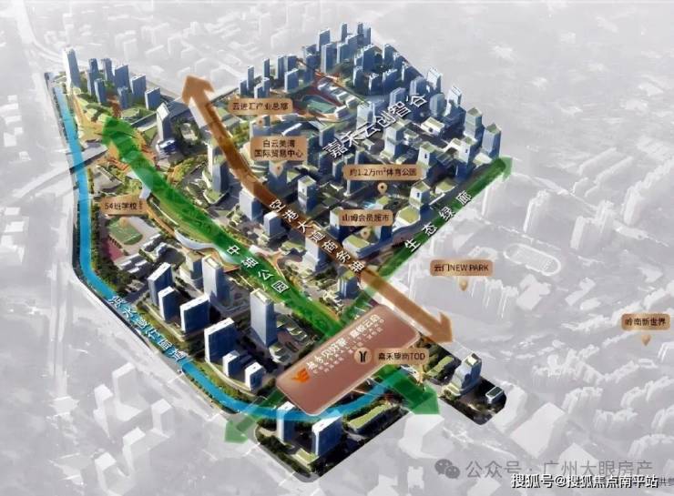 据2022年官方规划,嘉禾望岗定位为“白云新城嘉禾望岗商务核心区,产城融合的TOD综合开发示范区”。重点引入数字科技、智慧电商、智慧能源、智慧医药等产业,连结“广州设计之都·嘉禾望岗TOD白云智慧城”等高精尖产业发展势能,形成白云产业分布中心。这意味着,嘉禾望岗将不仅是TOD,同时赋予了产业中心的功能。