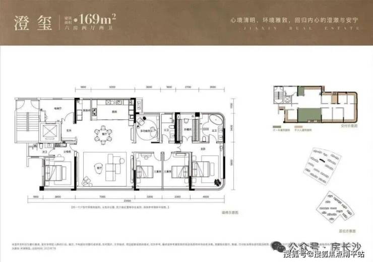 169㎡的户型,更是做到了“5+1房”设计,5个房间+1个书房,同样也是三明卫,超长面宽,得房率124%,套内面积约212㎡。