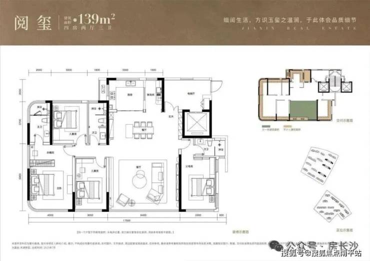 139㎡4房2厅3卫,得房率约120%,套内面积约166㎡,相当于旧规180㎡的大平层。
