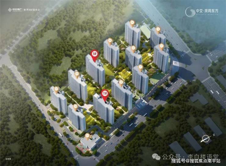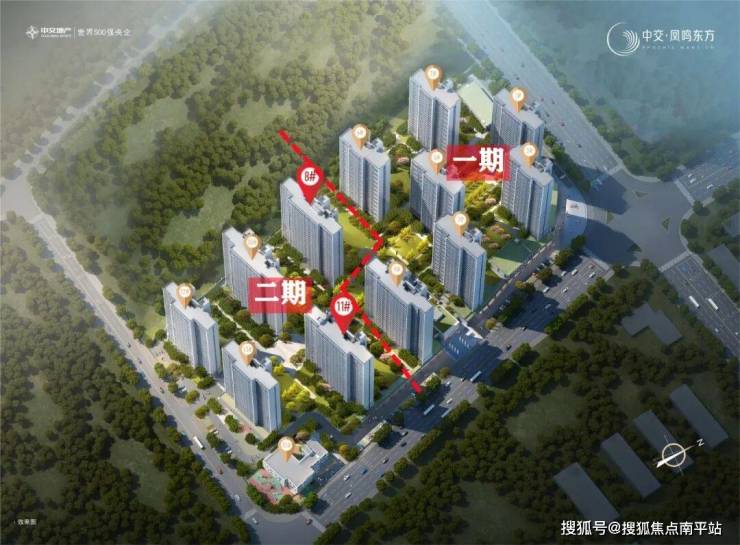 凤鸣东方,北边的一期已实景呈现,代表成熟;南边的二期为新组团,代表未来价值,但二期5栋住宅也已全部封顶,品质已显、具有一定成熟度。如此一看,与高铁新城“北边高成熟、南边高潜力”极其相似。看楼盘鸟瞰图: