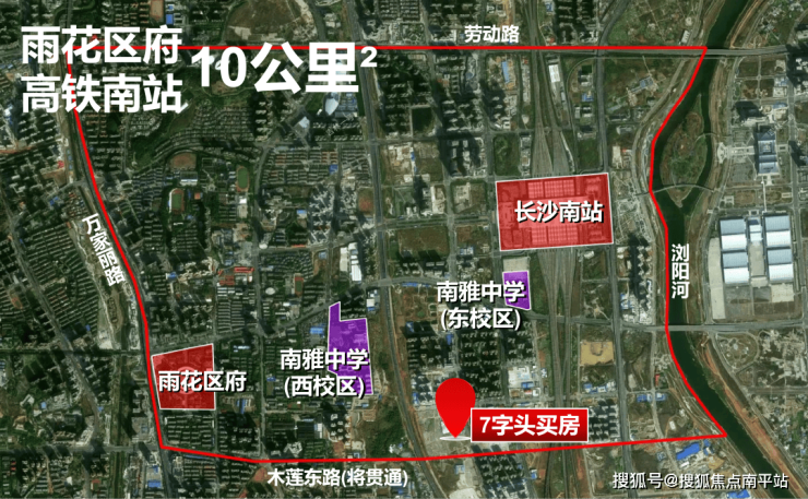 这一次,南雅中学向东1000米选址,开办一校两址新校区。消息爆出,长沙人突然开始“横着”看,雨花区府-高铁南站,已成一体: