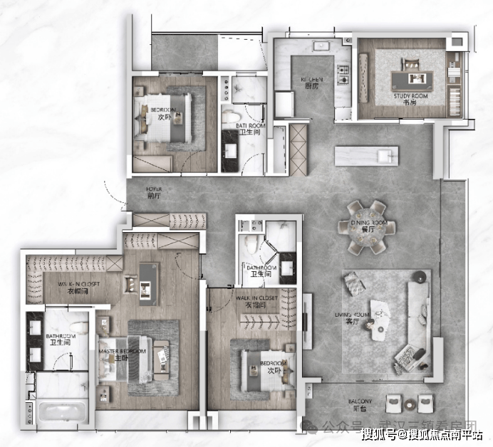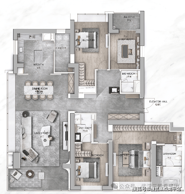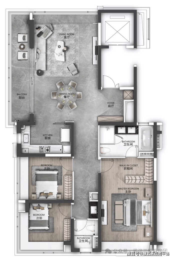 【大家风范,隽永之诗】纵横寰宇,约16米朝南开间横贯主次卧、客餐厅超100米楼间距,尽展辽阔视野,直面大师园景约8.4米南向阳台开间,墅级大横厅专属礼遇精妙南北双阳台设计,揽景与功能平分秋色酒店式双套房尺度,予私人定制般尊享日常